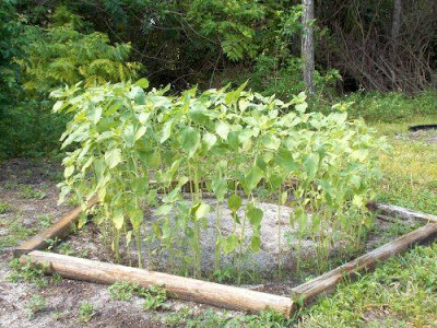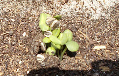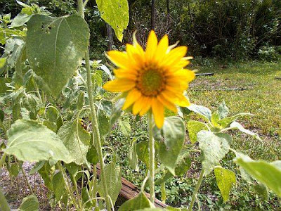 My nephews and I planted sunflower seeds in April. My youngest nephewput a few too many seeds in this spot. haha