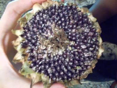 This is the first sunflower I harvested. Check out all of the sunflower seeds.