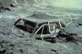 Image from WikipediaPyroclastic flows are fast-moving clouds of hot gas and rock/ash/dust. They can reach speeds up to 450 mph and the gas can reach temperatures as high as 1,830 degrees Fahrenheit. Their volume can be anywhere from a few hundred cubic meters to over a thousand kilometers. These flows destroy everything in its path, buries sites, and burns forests and buildings. The rocks inside the flow can be as big as boulders. People and animals caught inside a pyroclastic flow can die from burns or inhaling hot ash and gas.