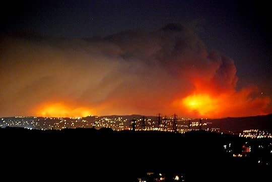 Image from WikipediaMy Story: When I was twelve, a series of arson fires erupted in my city (in Florida). I remember going home and seeing the black plumes of smoke rising in the sky and feeling the worst fear I’ve ever experienced before. My best friend’s dad said, “It looks like it’s right next to your house!” Sure enough, it was. I was dropped off at my driveway to see flames consuming the brush and trees a mere foot from my home. Later, I stood in the middle of the road, helplessly looking on as my family scrambled to save our pets, and firefighters moved into action to save our house. I watched flames eat their way to the edge of the road then skip over the asphalt and blaze to life on the other side.