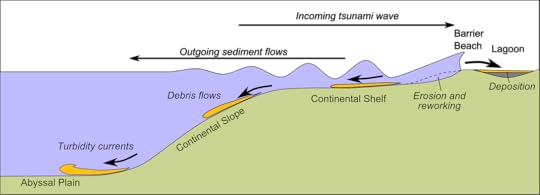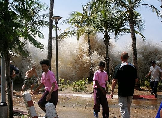 Image from WikipediaFACT:Tsunamis travel at 310-500mph, and from crest-to-crest its distance is about 125 miles long.If you’re ever at the beach when a tsunami hits, you’ll likely notice the water draw back much farther than usual as the wave approaches. When the wave gets closer, the water will rush back to shore and rise rapidly while moving inland.