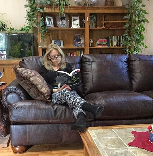 Kathy enjoying a book at her favorite reading spot.About Kathy: