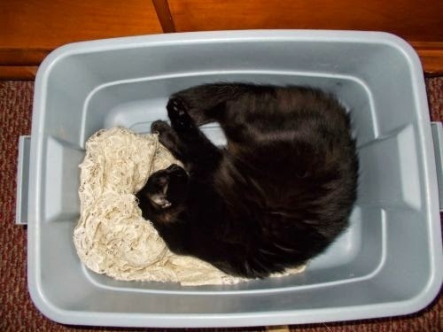 Cole makes every box into a bed. That's his blankie he's sleeping with. It used to be a lace curtain until hekept tearing it down. haha