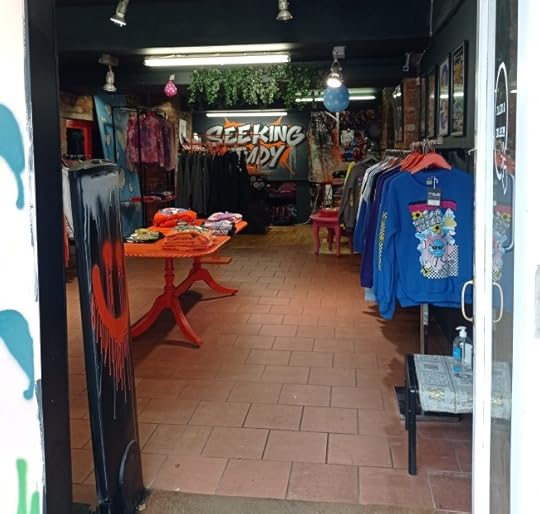 It wasn’t just this shop’s colourful window display that caught my eye – the name got my attention, too. The business belongs to a young local designer, 24 year old Megan McGuigan. Seeking Judy is a printed textile brand based in Ireland. They also specialise in hand dyed and reworked pieces.