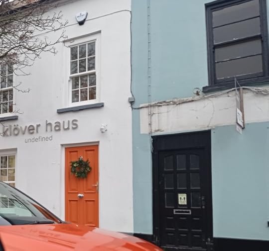 Not a very Irish or English sounding word on this building but I think it translates to Clover House. I like how the car colour matches that of the lovely orange door. That black door is quite interesting, too.
