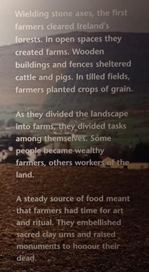 The displays are so interesting and informative, it was difficult to choose what to include in this post without making it as long as a wet week. I’m intrigued by the secrets bogs contain and we have a lot of bogland in Ireland. Butter used to be stored in them to preserve it and one of the oldest found so far was buried over 2,000 years ago. If you’d like to see some National Geographic photos and find out more about Céide Fields, an archaeological site older than Egypt’s Pyramids, I’ll leave a link at the end of this post. It’s fascinating.