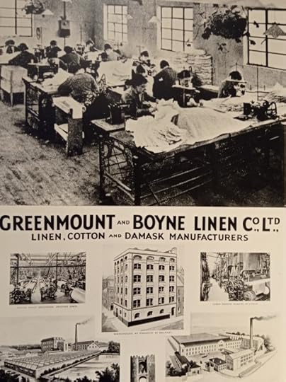 Flax was grown locally to supply the linen trade and I have found some of my ancestors recorded in 1796 as having received a free spinning wheel for growing an acre of flax. If they had grown five acres they would have been given a loom. From the 1750s water power was used to extract the fibre and finish the cloth but in the 1830s steam powered spinning mills were built and two decades later the power loom was introduced putting an end to a cottage industry. On the English census my ancestors in Lancashire went from being called hand loom weavers, working in their homes to being described as factory workers because they had to go to a mill to get employment. Thankfully, there are people in parts of Ireland hand loom weaving today so the skill hasn’t been completely lost.