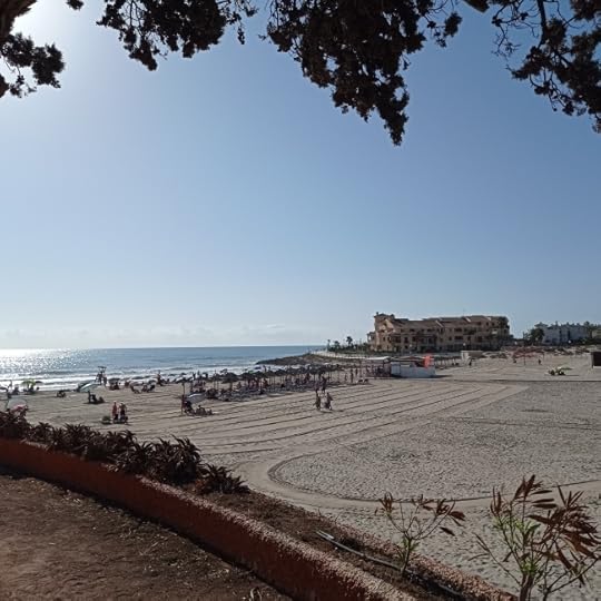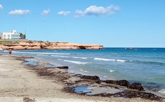 We stayed in Torre de la Horadada in a beautiful villa with its own pool just a short drive south of our old home and this marina was only a few minutes walk away. The beach below is where we swam in water that was a perfect temperature for hot weather.