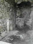 Unfortunately, the door was locked but if we had been able to get inside, we would have found a carved timber pulpit, lectern and pews and a carved stone baptismal font, c.1650. *
