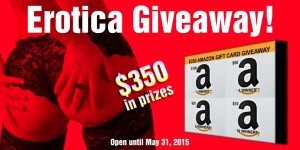 What’s up everyone! I’ve got a short little post for you today. I just wanted to let you know about a wonderfully huge Amazon Gift Card giveaway that I’m participating in. It’s a really great opportunity for you to win some FREE Gift Card cash at Amazon! All you have to do is sign in and sign up, and you’ll be eligible for 350 dollars of prizes! While you’re at it, you’ll be able to join the newsletters of some of the very hottest Erotica Authors around…it’s a win-win! Grab this deal while it lasts!