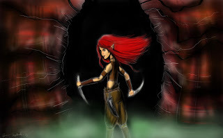 "Suddenly a deep rumble shook the bone-littered ground beneath their feet. A low hiss flooded the air from behind them. Astrid could see the giant Slasher’s shadow creep over their heads. She felt her blood run chill through her body. They had disturbed a Brood Mother.Without thinking, she grabbed Ethen by the arm and threw him out of the Brood Mother’s way. She felt the pinchers lash around her waist and squeeze. Ribs popped and snapped as the air was forced from her lungs. The Brood Mother shook her limp body about and then tossed her aside.Ethen ran to her side, his hands quaking as he dug into his near empty quiver.“Run Ethen, run…” her voice wheezed from her gaping mouth.Ethen reached for his last arrow and let it fly. It skidded off the towering Brood Mother like a fly. He let out a cry, falling to his knees. More hisses fluttered from all directions.So this is what it’s like to die,thought Astrid as her vision dimmed."