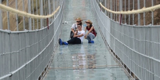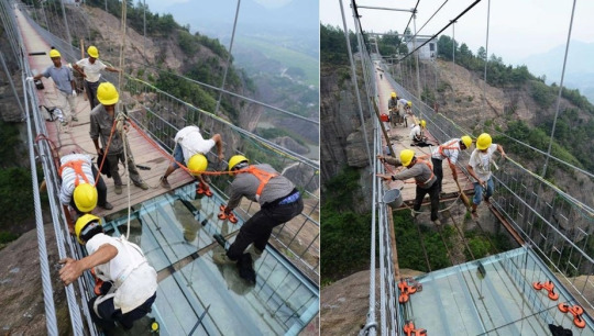 The steel frame used to support and encase the glass bridge is also very strong and densely built, so even if a glass is broken, travelers won’t fall through.”