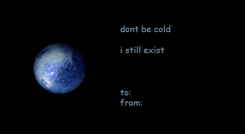 Always did love the solar system. But I’m feeling the love for poor ickle Pluto. I read somewhere the other day that Pluto is the same size as the Russian continent. Tiny! Well, okay, no literally. But for a planet? Yeah, that’s tiny!