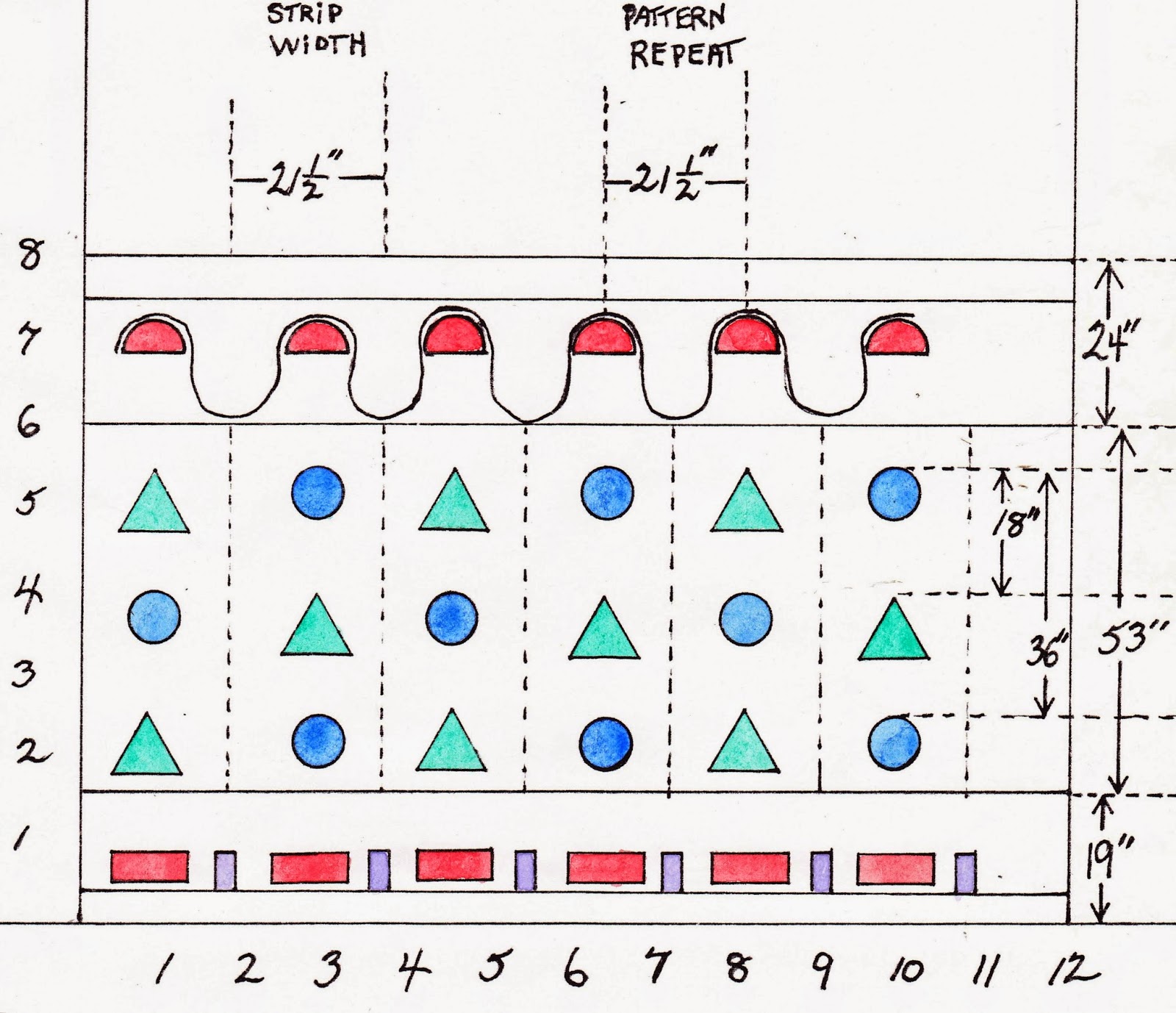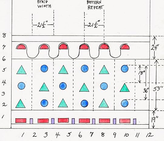 - top border appears in “Wallpapers of France 1800-1850” by Odile Nouvel (1981); bottom border in “Paper Magic” by Jane Gorden Clark (1992); diagram copyright 1994 by WRN Associates.