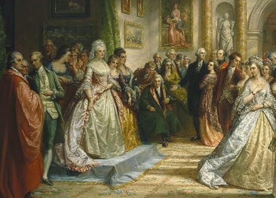 There was a tradition called the levee, or “public day,” when a line of guests would pay respects to the host or hostess of grand occasions and entertainments. In Philadelphia, Washington had political gatherings a couple of afternoons each week, and Martha presided over a social occasion one night a week. The well-known painting by Huntington “The Republican Court (Lady Washington's Reception Day)” shows her receiving guests while standing on a raised platform. This scene shows, to the rear, just the type of architectural shape designed to highlight her importance. Another clue in the painting is the way that George defers to her. This idealized painting was done in the mid-nineteenth century, yet the artist captured what made the levee a special occasion.