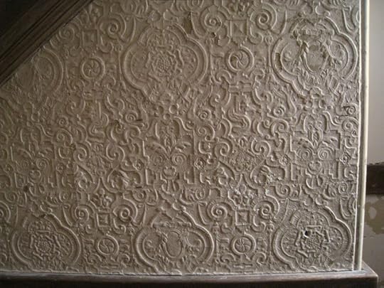 Six seemingly first-generation wallpapers from the house are of prime importance: a leather paper, a block printed floral, a “stenciled look,” a Lincrusta-type, an Anaglypta-type, and a varnished tile.