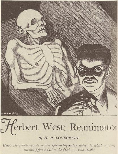 When you think of Damon Knight (1922-2002) you get a picture in your head of an old dude with a long, grey beard. Maybe you see him editing Orbit or hanging off the arm of his wife, Kate Wilhelm. Knight won many awards, wrote several books on writing science fiction, and is best remembered as a reviewer with high standards of quality in the genre. What you don’t picture is a twenty-year-old kid doodling – because Damon Knight started in science fiction as an artist. His first published work was in Amazing Stories, May 1940. His first story appeared just a little later in Ray Bradbury’s fanzine, Future Fantasia, Summer 1940. It was called “The Itching Hour.” His first professional sale wasn’t until February 1941 in Stirring Science Stories with “Resilience,” where they botched the ending. By 1950 he would be writing stories like “Not With a Bang” and “To Serve Man” (made famous on The Twilight Zone with “It’s a cookbook!”) and his fame as a short story writer would be forever set. Before then, a lot of minor work and plenty of artwork.It would be fair to describe Knight’s art style as “cartoony.” That first sale to Ray Palmer was a cartoon. The cover he drew for the fanzine, Le Zombie in January 1940 has the same line-oriented feel. Despite this simplified style, Knight puts it to good use, adding more atmosphere and interest with delicate shading and atmospheric tones, eventually working on black scratch board. His work appeared primarily in Science Fiction Quarterly, Future, Super Science Stories, and Weird Tales, all low-paying art markets. This also explains why his artwork is so hard to find. With the exception of Weird Tales, these magazines were small timers and not collected as widely. (I imagined only for a random second that it was because Knight had purchased up as many copies as possible over the years and destroyed them. Like I said, only for a second.)
