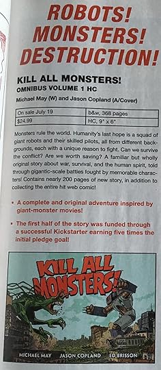 If you look at page 65 of this month's Previews catalog (that's the one with the March 2017 cover date for stuff hitting shops in May 2017), you'll see the solicitation for the Kill All Monsters Omnibus, Volume 1. Because of the way the book market works, our ginormous hardcover isn't actually hitting in May with the single-issue comics being advertised in the same catalog. We're coming out on July 19.