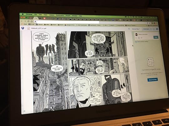 It's going to be awesome. I just this week got to read the whole thing for the first time and I'm really happy with it. Jason is, too. We can't wait for you all to see it. It's going to be a brick of a book: 368 pages containing the previous Ruins of Paris volume (slightly edited, so the original book is still a unique object), the continuation and conclusion of that story, the complete Dark Horse Presents story (reformatted for widescreen presentation), a whole new story set in a different part of the Kill All Monsters world, and pin-ups by some amazing artists. And all of that for about $25.