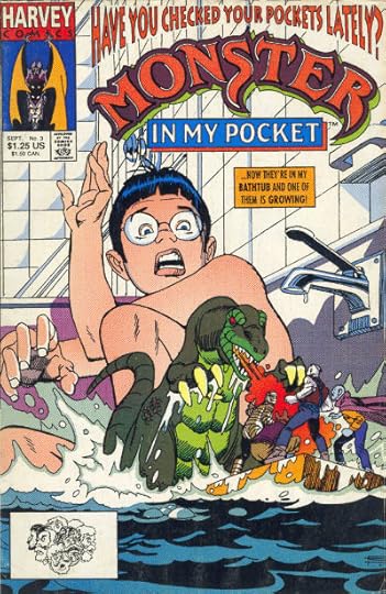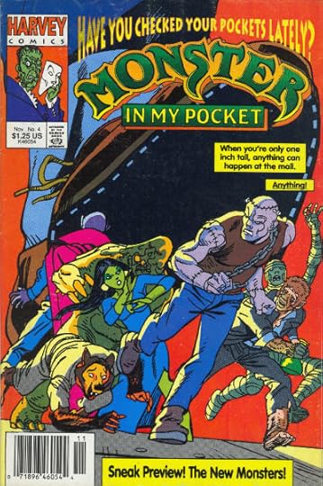 The fourth issue begins a storyline that is not completed. The boys need a house for the monsters and go to a toyshop to buy a doll house. The Bad Guys attack, but are stymied when a spoiled little girl named Theresa buys the house first and takes the monsters home. The two factions join forces for the moment. She bakes Swamp Beast in a microwave reducing him to hard chunks (which they suggest they can revive with some water). She makes Werewolf do dog tricks. Theresa’s reign of terror is stopped when Spring-Heeled Jack uses his power to terrify by creating the illusion of a person’s greatest fear. Theresa leaves the monsters alone because Jack reminded her of her father, the disciplinarian of the house.We can only guess that the next issue would feature Jack and Tom finding and rescuing the monsters. We’ll never know. The comic was cancelled, which was a little surprising since the first issue sold out. But the toy line was done and MIMP disappeared from 7-11s everywhere by 1992, mutating into Ninjas in My Pocket in 1996. By that time, the word Pokemon was beginning to surface…