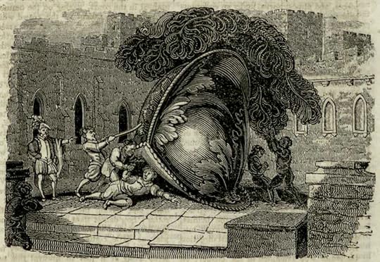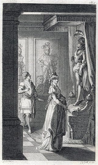 Manfred's wickedness has so angered the spirit world that they murder his only heir (with a giant helmet) and begin to haunt his castle. But that's mostly dressing on the real story, which is about the deplorable lengths that Manfred will go to in order to get a new heir, and how those actions affect his family. Manfred of course is the nefarious noble of the story who persecutes a couple of young heroines: his dead son's fiancée Isabella (whom Manfred now wants to take as his own wife, even though Manfred is already married) and Manfred's daughter Matilda (whom Manfred is willing to trade to Isabella's father in exchange for Isabella). There's also a young hero - beloved by both girls - who fights to put everything right again. Unlike Beauty and the Beast, it does take a man to rescue these women.
