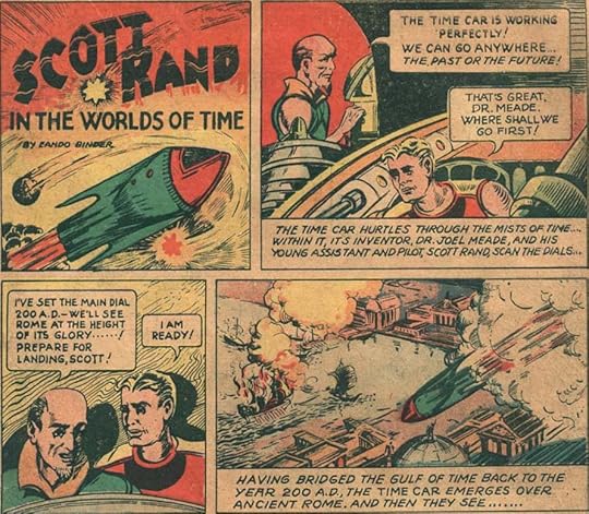 Most of the early science fiction comics are just plain bad. Minor versions of Flash Gordon and Buck Rogers, they are sadly dated today. It's easy to see why SF historians have written them off as largely irrelevant. Still, they are a weak reflection of what science fiction was in the early pulp years. One comic that I find fascinating in this regard is "Scott Rand and the World of Time" by Otto Binder (writing under the Eando Binder pseudonym) with artwork by his older brother, Jack. The three segments that comprise this masterpiece of silliness appeared in Top-Notch Comics #1-3 (December1939-February 1940).