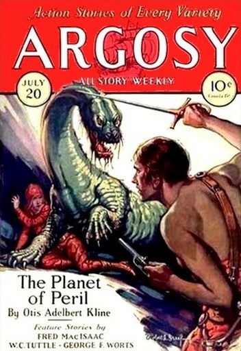 Though not the longest running series in SF (that title probably goes to Neil R Jones' Zoromes), the Radio Series is an interesting specimen of Argosy's desire to replicate Edgar Rice Burroughs' success (both interplanetary as well as jungle). They would do this slowly over time, first with Farley, then Kline, (they actually rejected Kline's first novel, The Planet of Peril, until 1929, because they had already purchased The Radio Man), JU Guisy, Charles B Stilson, and others. As Sam Moskowitz points out in his Under the Moons of Mars (1970), this stems from the rough handling that ERB received by Thomas Metcalf over The Outlaw of Torn and The Return of Tarzan: