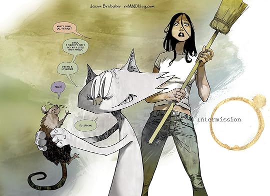It's tough to judge the first of a multi-part story, but I'm eager to read Volume 2 of the series of graphic novels. Brubaker's got a lovely visual style and has created a beautifully mad world to tell his story in. It's got lizard-men, talking cats, robot-suits... lizard-men whose brains have been transplanted into cats wearing robot-suits. And we're introduced to the craziness in a cool, X-Filesy way through a skeptical woman whose deceased father made their village infamous by claiming to see something weird.