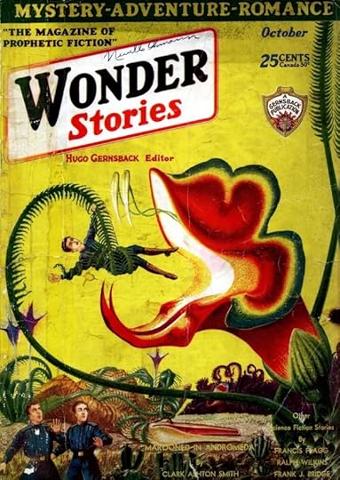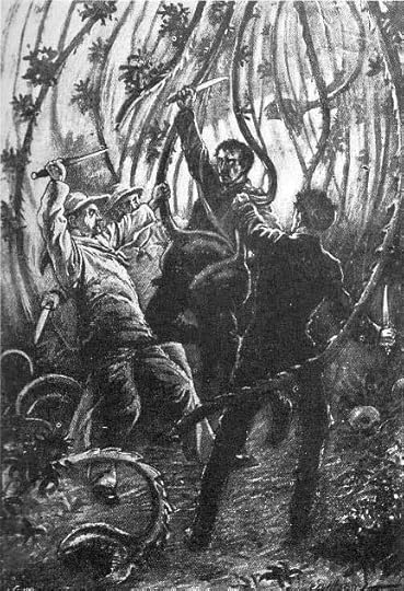 The idea of plant monsters really caught fire in the 1870s after botanical discoveries of large drosera and other flesh-eating plants were found and reported in the illustrated newspapers. These lead to fake reports which then lead to the storytellers of the day creating the first man-eating tree stories. These include A Conan Doyle, Julian Hawthorne, Phil Robinson, Grant Allen, and many lesser known writers. HG Wells reinvigorated the idea in 1894 with his blood-sucking orchid tale, "The Flowering of the Strange Orchid." I always used to think Wells invented the idea, but he comes to the part twenty years late. It was Frank Aubrey's The Devil-Tree of El Dorado (1896) that scores a hit in novel form. The Victorians would go on writing about killer plants all the way into the pulp era.