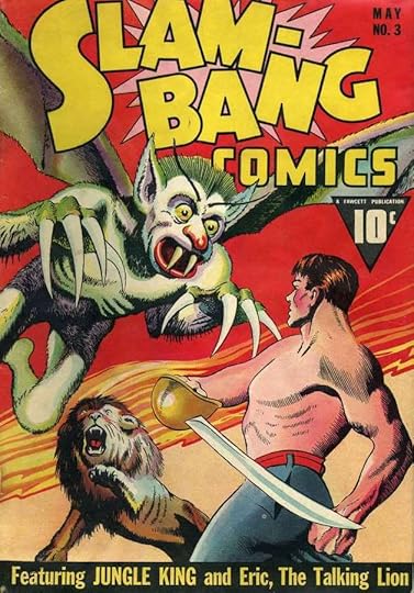 Slam-Bang was a Fawcett title that ran for only seven issues, but Manly and Granger appeared in them all. Beginning with issue #1, Lee Granger got the last nine to ten pages of each issue. The scientist-explorer sets out on a mission to fly over a part of unknown Africa. His plane is sabotaged by Arabs who are conducting illegal slaving in the unmapped territory. Granger saves himself when his plane explodes by using his loose clothing like a parachute. He is discovered by pygmies and accidentally wounds their chief with a poisoned spear. Granger saves the man's life and becomes friend to the entire tribe. As the pygmies' leading light, he teaches them science, helps them build a brick town, and even captures a lion and alters its brain. This is Eric, the talking lion, who is Granger's best sidekick.
