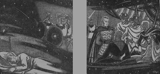 Ed worked in what is now known as "portal fantasy" a decade before CS Lewis took us to Narnia. A portal fantasy is one in which a person from our world goes to another realm of the fantastic. Perhaps the most famous in Weird Tales were Nictzin Dyalhis's "The Sapphire Siren" and CL Moore's "Joirel Meets Magic" and "The Dark Land." Hamilton's portal fantasies included Brian Cullen going to the land of Celtic myth in "The Shining Land" (May 1945) and "Lost Elysium" (November 1945), also "The Shadow Folk" (September 1944), "The Inn Outside the World" (July 1945), and "Twilight of the Gods" (July 1948). Like the Harold Shea series by L Sprague de Camp and Fletcher Pratt (1940-1954), Hamilton liked placing everyday people into mythic situations. Unlike those Shea stories that appeared in Unknown, Hamilton's agenda is not ridicule-oriented humor, but adventure.