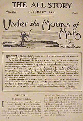Dr. Thorn tries to explain it:"Suppose," Thorn went on, "that Henry Stevens was a unique case of that. Suppose that his mind happened to be in rapport, from the time of his birth, with the mind of another man—another man, who was not of Earth but of some world far across the universe from ours? Suppose that each man's subconscious was able to experience the other man's thoughts and feelings, when his own consciousness was relaxed and sleeping? So that each man, all his life, seemed each night to dream the other man's life?"What Hamilton has done is use portal fantasy to pay homage to an author he admired and read as a young man: Edgar Rice Burroughs. Not to imitate him, as he does in "Kaldar-World of Antares" (Magic Carpet, April 1933), "The Snake-Men of Kaldar" (Magic Carpet, October 1933), and "The Great-Brain of Kaldar" (Weird Tales, December 1935); this series of scientific romances is clearly a pastiche of Burroughs. "Dreamer's World" is something more. It is not an homage to ERB so much as it is one to Normal Bean, the guy who wrote that first story "Under the Moons of Mars" in 1912. Burroughs had chosen the pseudonym to imply he wasn't crazy, that he had a "normal head." An editor corrected the "error" and "Norman Bean" became the author. Burroughs, disgusted at the change, used his own name after the original publication. Hamilton latches onto this early rendition of Edgar Rice Burroughs: the quiet, normal-seeming fellow, who failed job after job, dreaming away about Barsoom, and sword fights, and green, six-limbed monsters called tharks. Hamilton takes that man and calls him Henry Stevens and tells us of an alternative Burroughs who may have lived his own stories.