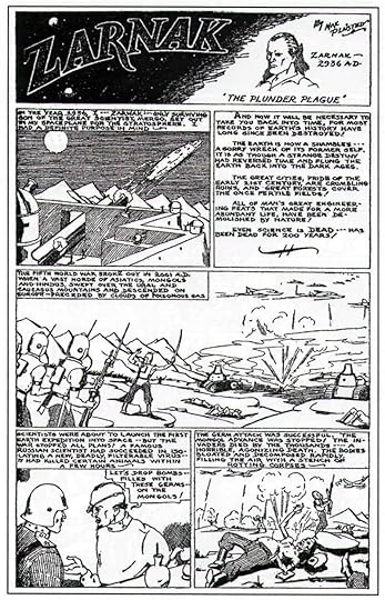 I plan to rectify Mr. Del Rey's omission. That "comic strip" was called "Zarnak" by Max Plaisted, a pseudonym of Jack Binder. (Both Binder and Weisinger have big things to do in comics, but more on that later.) Jack Binder was Earl and Otto's older brother (Jack 1902, Earl 1904, and baby Otto in 1911). Jack was the one who spearheaded the brothers' involvement with comics. Earl and Otto formed "Eando Binder" and went on to write such pulp classics as "I, Robot" before Otto eventually joined the Fawcett Comics team and wrote Captain Marvel and later moved to DC to help create Supergirl. Let's just say that Binders and comics went together.