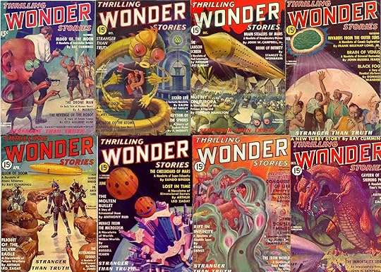 Wonder Stories has a long and complicated history. It began as Air Wonder Stories and Science Wonder Stories, then became just Wonder Stories. All three were owned by Hugo Gernsback. But in 1936, Gernsback gave up the pulp game (at least for a while) and Wonder Stories got bought by the Standard Magazine chain, which changed the name to Thrilling Wonder Stories and placed twenty-one-year-old Mort Weisinger in charge.Lester del Rey explains the change in his The Worlds of Science Fiction: The History of a Subculture (1977):
