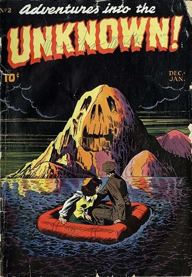 The second issue was December 1948/January 1949 and featured another Edvard Moritz cover, this time with people in a rubber dinghy about to land on an island with a creepy skull like mountain. The dark blue and orange is perfectly lurid.