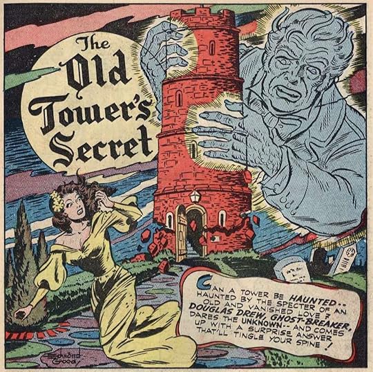 "The Old Tower's Secret" features an official ghostbreaker, Douglas Drew (not to be confused with Dr. Desmond Drew, created by Will Eisner in 1949). An ancient locked tower is protected by the ghost of the man who locked it forever. Dr. Drew and his companions enter the tower and solve a 100-year-old mystery. Art by Edmond Good.
