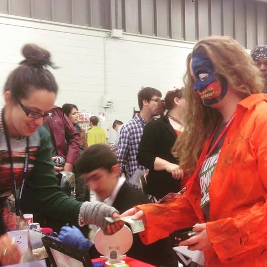 Diane did great as well. She's made a reputation for herself as a nerd-friendly face-painter who can reproduce anything on your head. If she can look up a reference on her phone, she can put it on you. And she's got a following now of people who come to her first thing so that she can complete their costumes with make-up. She does an awesome Two-Face, for example.