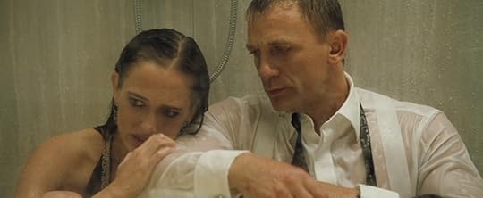 He doesn't appear to have been traumatized by either of the murders he committed in the cold open, and certainly not by any that he's committed in the movie since then. But some part of him is able to empathize with Vesper's reaction and comfort her through it. That beautiful moment in the shower connects them, so that later, when they undergo even more serious suffering together, they become inseparable. That's so much more powerful than it is in the book where her love for Bond seems to be mostly driven by guilt over her role in his torture.