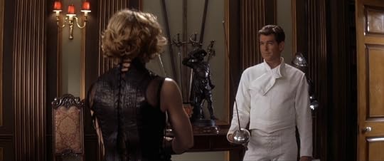 "I've been known to keep my tip up," concerning fencing, but not really. Brosnan's Bond is way more fond of erection jokes than I am.