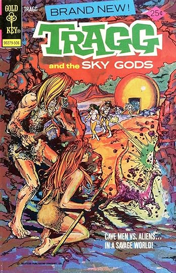I want to read all the old Gold Key original comics. Titles like Tales of Sword and Sorcery, Solar, Man of the Atom, and Magnus, Robot Fighter conjure up feelings inside me that are hard for anyone born before 1960 and after 1980 to understand. Unless you grew up in the '70s and remember all those comic book covers by Jessie Santos, Richard Powers, and others calling to you, you just won't get it. I never got to read many of them until now. Sure, they were twenty-five cents, sitting there in the wire rack, but I was a kid and a quarter wasn't easy to find. (And Marvel and DC always came first.) Later I saw copies in bags, two a piece, in stores like Woolco and Woolworths (two establishments as dead and gone as Gold Key). I have no idea what they sold for, but I didn't buy any of those either. But occasionally, I came across a copy somewhere. Just a taste...The contents were never as good as those covers, but it still remains a dream of mine to read all the old titles, especially those written by Donald F Glut. His books were always the best because he genuinely liked the science fiction, fantasy, and horror genres. I'm starting my journey with Tragg and the Sky Gods. This is a very appropriate title to begin with since the idea that inspired it could only have come from that decade. Erich von Daniken's Chariot of the Gods? (1968) inspired a good part of the '70s love of Bigfoot, the occult, UFOs, and other fringe beliefs. It was in to be out. Far out!