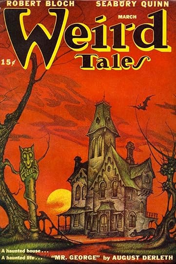 But to go back to 1937 and the three intrepid members of the Ajax Ghost Exterminators. I look for clues like our brilliant detectives. The first is the date: 1937. What films or books might have been so popular that Friel would think to do a cartoon from them? The answer was pretty easy to locate. Topper was the box office winner for 1937, coming out on July 16. Based on the 1926 novel by Thorne Smith, the film features two fun-loving ghosts played by Cary Grant and Constance Bennett. The couple torment conservative banker Cosmo Topper, played by Roland Young (who received an Oscar nomination for the part.) Topper is a Walter Mitty type, regimented by his wife who's played by Billie Burke. The scene that most likely affected Friel was the finale of the film, when the ghosts pull Topper out of a fancy hotel, playing gags on the house detective and bellboy.So far, so good. But it doesn't explain everything. The Disney story man could have just had Mickey and friends arrive at the old house late one night, a ploy used in some later Sylvester and Porky Pig cartoons at Warner Brothers. But Friel doesn't do this. He specifically makes them ghostbreakers, the three members of the Ajax Ghost Exterminators. Armed with silly tools like a shotgun, a butterfly net, an axe, and a mouse trap, the three characters enter a house worthy of a Weird Tales cover. Now, Friel may have done all this for the joke of comparing vermin exterminators with ghost exterminators, a trope that would last until the 1980s when Harold Ramis and Dan Ackroyd wrote Ghostbusters, but I wonder if Friel was inspired by something more?