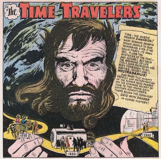 The first installment (October-November 1950) introduces Dr. Tom Redfield, a nuclear physicist who is working on a new type of cyclotron. His girlfriend, the wealthy Peggy Foster, drags him to an auction where she out-bids the Russian Vanov for newly discovered papers by Nostradamus. The papers contains Nostradamus' prediction of a nuclear war in 1956, but also speaks of an antidote to the radiation. Tom uses the ancient priest's design for a "tempus machina" to finish the cyclotron. The Russians capture Tom and Peggy and put the couple in the cyclotron chamber to kill them, but actually send them back in time to 16th century France. Tom and Peggy are arrested as English spies. Speaking with Nostradamus, they learn that the counteragent to radiation can only be found on Venus. The duo flee back to the spot where the time machine dropped them, waiting for the time beam to take them back. They are surrounded by angry pursuers when they return to 1950.
