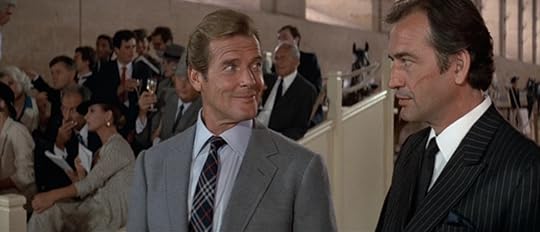 Zorin is clearly insane and that's fine for a Bond villain, but we're also supposed to believe that he's been able to fool the whole world into thinking he's respectable. Watching him at his party, I can buy into that. He's super charismatic. But his plans are ridiculous and he goes to very little effort to conceal his involvement in them. There's a French detective who's looking into Zorin's horse racing activities and even though the guy has literally nothing on Zorin, Zorin has him murdered in a public place, in a spectacular way, and even drives the getaway boat himself. I can easily believe that Zorin's psychosis makes him want to be as closely involved with the killing as possible. I just don't accept that no one's noticed his activities before now and that he's got this perfect reputation the Minister of Defense refers to.