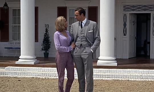 Because of that, I don't think Bond's as ineffective in Goldfinger as he's made out to be. Yes, he spends half the movie in Goldfinger's custody and doesn't do much "spying." But the literary Bond never does a lot of spying, either. It's that whole Blunt Instrument approach and he's playing it by the numbers. He may not get captured on purpose, but once he does he makes a conscious decision to stay there - making himself too dangerous to kill - and to do as much damage as he can from inside. Converting Pussy is a major part of that and as awful as he treats her in the barn, I argue that that's not the reason she switches sides. She doesn't "go stupid" at Bond's embrace, but because she's actually more human than she lets on and Bond appeals to that.