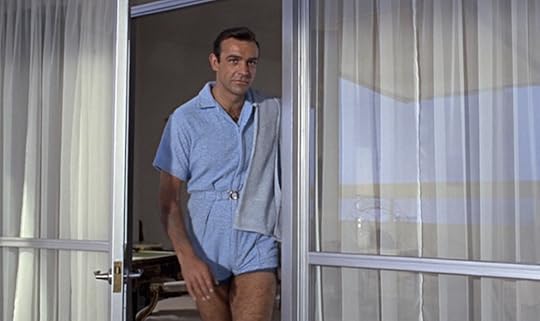 A blue terry-cloth onesie. And that's how he meets Jill Masterson. Good thing you're James Bond, buddy.