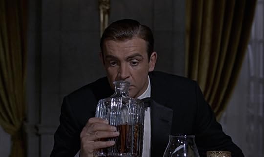 The literary Bond certainly cares about food and drink, but he isn't the obnoxious know-it-all that the film version becomes, starting with Goldfinger. He snidely quotes to Jill the correct temperature for serving Dom Perignon '53 and later shows up M by criticizing the indifferent blend and overdose of bon-bois in the brandy they're drinking. Even forgetting the showing off, the literary Bond never would have disrespected M that way.