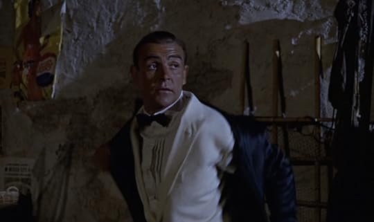 Bond goes to the island because it's close to Blofeld's and can be used as a base from which to strike, but once he gets there, his transformation is profound. Not his physical transformation, which reads as unconvincing as Sean Connery's looks in the movie version, but his spiritual transformation. Away from the cynical, irony-loving Tanaka and surrounded by people who just genuinely love their way of life, Bond finds peace. He never considers not killing Blofeld, but by the time he sets out to do it, the sense is that he's doing it out of duty. It's no longer about revenge for him. Those thoughts have vanished and as a reader I'm just hoping that he can survive and maybe get back to Kissy. She has a ridiculous name, but I like her more than any of Bond's romances since Domino. She's Bond's equal and brings out goodness in him.