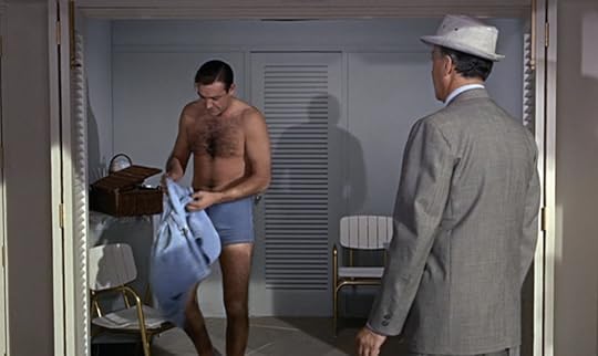 M threatens to take Bond off the mission at one point, suggesting that "008 can replace you." I think that's the first mention of another Double-O agent in the series. He comes up again when Goldfinger is about to cut Bond in half with a laser. Bond says that if he's killed, 008 will just step in. This is probably a fool's game, but I'm going to try to keep track of the other Double-Os in the movies. There are only a couple of others in the books, so I'm curious to see how expansive that department is in the films.