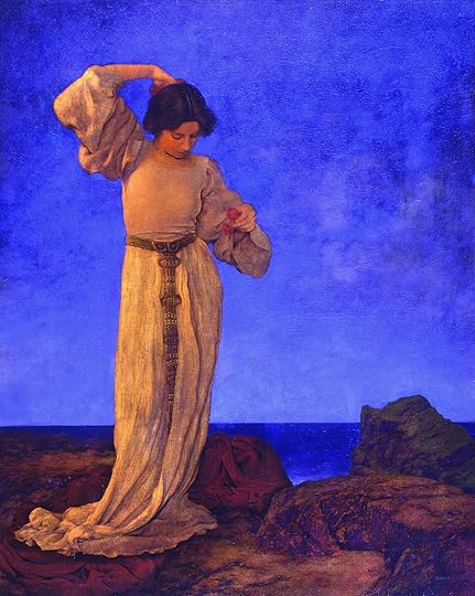 Maxfield ParrishLastly, the anonymous reviewer calls attention to Bok's similarity to earlier artist Maxfield Parrish. Bok actually studied under Max Parrish and considered himself his apostle. The resemblance is certainly intentional.Was Kinsmen of the Dragon a terrible novel? I wish I could tell you. I haven't read it. But I think a little historical perspective might help here. This was 1951-52. Science fiction magazines, book publishing even juvenile novels and hard covers were all on the horizon. Fantasy was the poor, retarded step-cousin SF fans hid out back in the wood shed. Tolkien hadn't published The Lord of the Rings yet and even those books would need another ten years to explode and change everything. Many of the poor reviews could have been 1950s SF-hate, which carried on until the 1970s when fantasy could throw sales figures from LotR and The Sword of Shannara at the sneering critics.