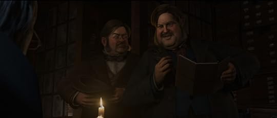 In reality, Scrooge's view wasn't so different from a lot of powerful men in Victorian London, but Dickens writes as if it is. These portly - in Zemeckis' version, extremely portly - gentlemen may make merry all year round, but at least at this one time of year they think beyond themselves and consider those less fortunate. And they're used to seeing that attitude in everyone they talk to. It's not a radical kind of compassion, it's simply the baseline that any human being should be expected to possess. But Scrooge doesn't even have that.